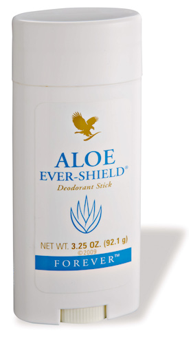 Aloe Ever Shield dezodorans u stiku će vam dati svežinu, osećaj čistote i samopouzdanje. Aloe Ever-Shield dovoljno je blag da se može nanositi odmah nakon brijanja ili depilacije. Aloe Ever Shield ne ostavlja mrlje na garderobi. Aloe Ever-Shield ne sadrži aluminijumske soli. Sadrži prirodne supstance koje sprečavaju razvoj bakterija koje prouzrokuju negodan miris. Sadržaj pakovanja 473ml. (izvor).